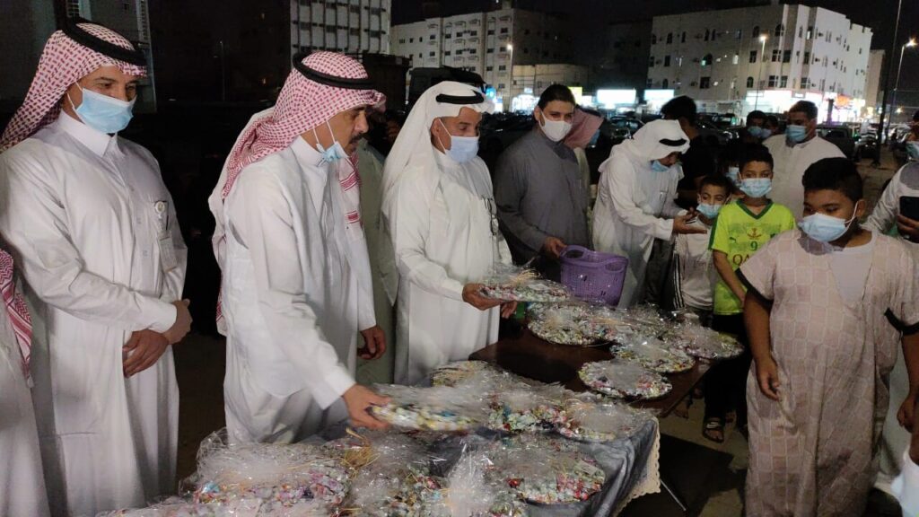 وقال – عمدة حي بني معاوية العمدة – منصور صالح الجهني هذه المبادرة من قبل فريق صنائع المعروف التطوعي التابع للتنمية الاجتماعية بالمدينة المنورة بعد التنسيق معي كعمدة للحي وتم اختيار حي الأعمدة لتوزيع حلوة العيد لسكان الحي لكثرة العدد المتواجدين في هذا الحي وهذه المبادرات التطوعية يدعهما صاحب السمو الملكي الأمير فيصل بن سلمان يحفظه الله ونائبة صاحب السمو الملكي الأمير – سعود بن خالد الفيصل وحث الجمعيات الخيرية بالعمل الخيري لخدمة الأهالي كما أتقدم بالشكر للأستاذ – ناصر القاضي الذي دشن هذه الفرحة فرحة العيد وتوزيع حلوة العيد على أبناء الحي والشكر موصول للدكتور – فهد الأحمدي على هذه المبادرة ومنذ جائحة كورونا ونحن نشاهد عدد من المبادرات ونطلع للمزيد من هذه المبادرات .