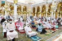 جموع المصلين يأدون صلاة العيد بالمسجد النبوي الشريف