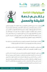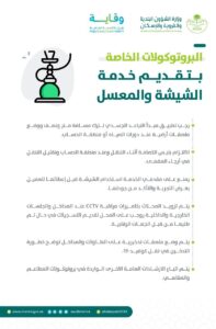 وأعلنت وزارة الشؤون البلدية والقروية والإسكان البروتوكولات الخاصة بتقديم خدمة الشيشة والمعسل وهي على النحو التالي :