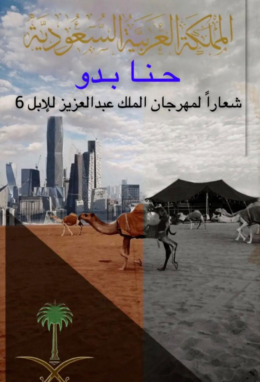 رسمياً أعلن رئيس مجلس إدارة نادي الإبل مؤسس ورئيس مجلس إدارة المنظمة الدولية للإبل (ICO) فهد بن فلاح بن حثلين رسمياً “حنا بدو” شعاراً رسمياً لـ مهرجان الملك عبدالعزيز للإبل 6.