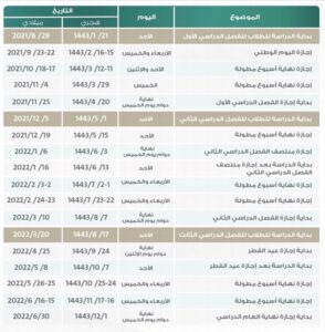 أعلن معالى وزير التعليم د .حمد بن محمد آل الشيخ خلال المؤتمر الصحفي الذي عقده اليوم الأربعاء في مقر وزارة التعليم إن التقويم الدراسي سيكون بنظام ثلاثة فصول بدلاً من فصلين دراسيين، على أن يتكون كل فصل دراسي 13 أسبوعاً، لافتاً إلى أن التقويم الدراسي الجديد يتضمن ١٢ إجازة أثناء العام الدراسي، وفي كل فصل دراسي هناك إجازات نهاية أسبوع مطولة Long weekend، كذلك إجازة بين كل فصل وآخر وهي كالتالي :