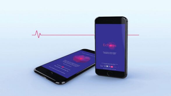 تمكن باحثين طبيين من جامعة ماسترخت الهولندية وكلية كينغز لندن واستوديو التصميم البريطاني سيلول من ابتكار تطبيق إيكوز الذي يتيح للمستخدمين سماع صوت دقات قلوبهم وإيقاعها.