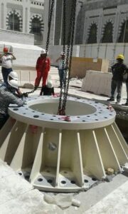 وصلت قاعدة أكبر مظلة في التاريخ.. وأكبر مظلة في العالم لغاية الآن.. للمسجد الحرام.. للاستعداد لوضعها في مكانها المخصص.. للمشروع الضخم لتظليل صحن المطاف…. وتزن هذه القاعدة 16 طن وباقي اجزائها 600 طن… وتم الاتفاق مع الشركة المصنعة على ان تكون هذه المظلة حصريا فقط للمسجد الحرام… وسوف تعمل هذه المظلة العملاقة على ترطيب الأجواء في صحن الكعبة وتخفيف شدة الحر على الطائفين في جميع الأوقات وخصوصا فترة الظهيرة.