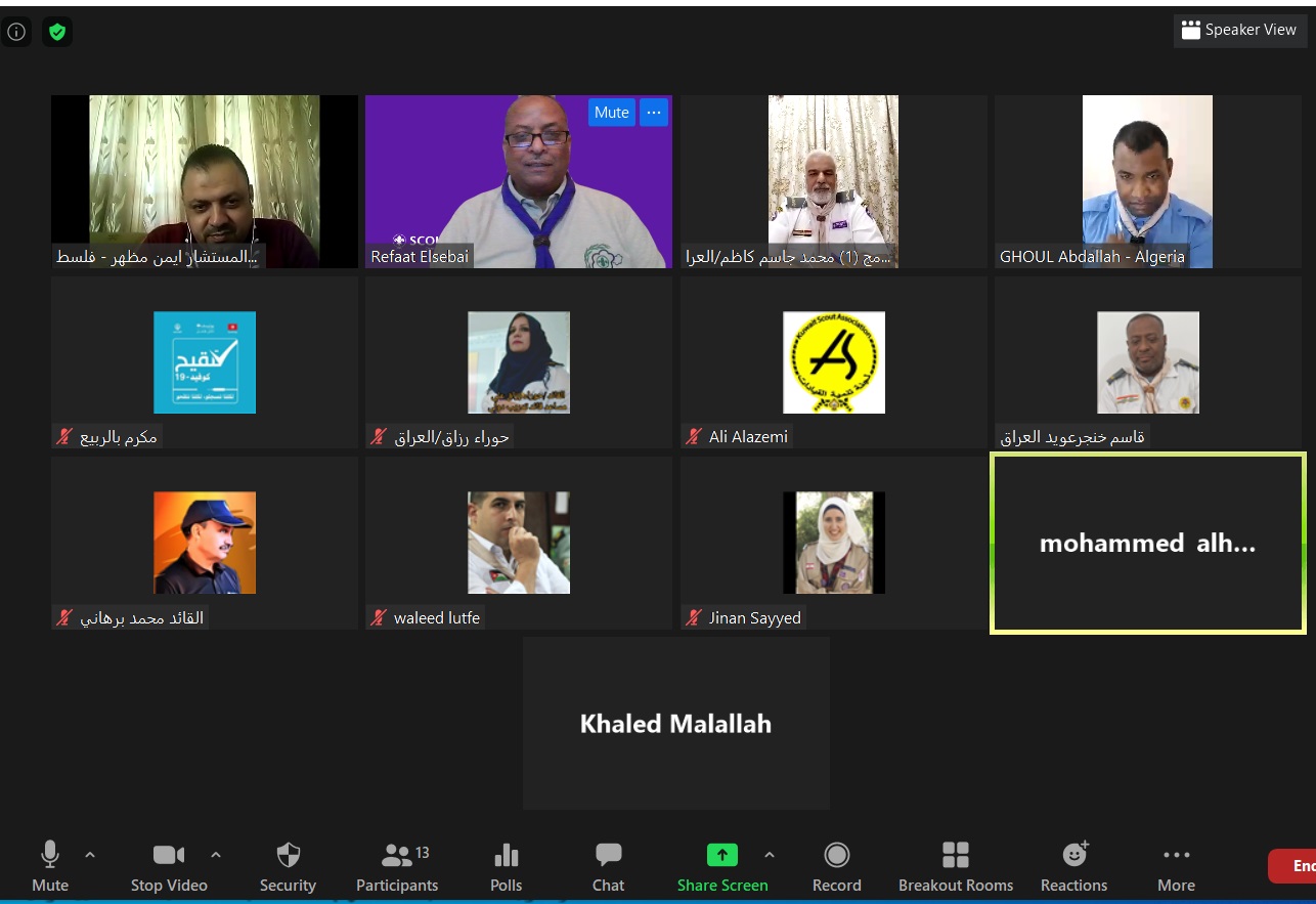 عقدت هيئة قيادة ورشة تنظيم وإدارة وتقييم الجلسة التدريبية ، التي يعتزم الإقليم الكشفي العربي تنظيمها خلال الفترة 4 – 7 ذي القعدة 1442هـ الموافق 14 الى 17 يونية 2021 اجتماعاً افتراضياً يوم أمس بحضور نائب المدير الإقليمي مدير الطرق التربوية رفعت السباعي ، و نائب رئيس اللجنة الكشفية العربية الفرعية لتنمية القيادات محمد الهنائي، وقادة تنظيم الورشة .