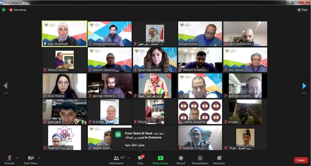 شاركت جمعية الكشافة العربية السعودية، اليوم في الاجتماع الافتراضي التعريفي الذي عُقد للجمعيات الكشفية العربية ، للتعريف بـ منتدى الشباب الكشفي العالمي الـ 14 والمؤتمر الكشفي العالمي الـ 42 ، الذي تُنظمهما افتراضياً المنظمة الكشفية العالمية خلال الفترة من 9 إلى 21 محرم 1443هـ .