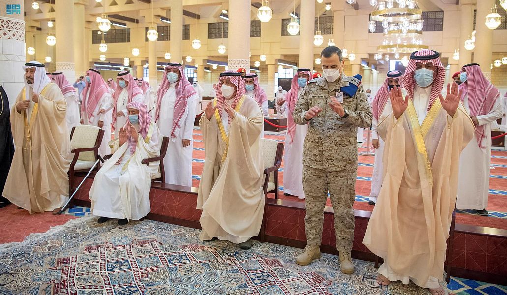 وأدى مع سموه الصلاة سماحة مفتي عام المملكة رئيس هيئة كبار العلماء وإدارة البحوث العلمية والإفتاء الشيخ عبدالعزيز بن عبدالله آل الشيخ، وصاحب السمو الملكي الفريق الركن تركي بن بندر بن عبدالعزيز قائد القوات الجوية الملكية السعودية, وعدد من أصحاب السمو الأمراء والمعالي وجمع من المواطنين.
