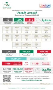 وكشفت الوزارة، عن وتسجيل (1290) حالة تعافي ليصبح إجمالي عدد الحالات المتعافية (461,628) حالة، فضلًا عن تسجيل 13 حالة وفاة.