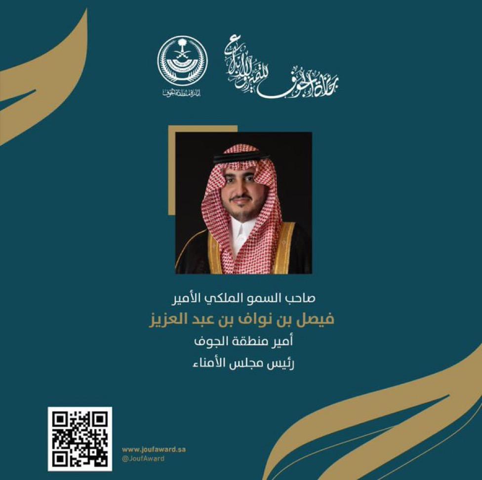 وقد نوّه أمين عام الجائزة الدكتور أحمد السناني بالمتابعة الدائمة التي تحظى بها الجائزة من لدن صاحب السمو الملكي الأمير فيصل بن نواف بن عبدالعزيز أمير منطقة الجوف ورئيس مجلس أمناء الجائزة، مشيراً إلى اهتمام سموه بكل ما من شأنه تعزيز فرص الارتقاء بمجالات الجائزة وإثراء روح المنافسة لتحقيق التميز والإبداع بين أفراد ومؤسسات مجتمع الجوف.