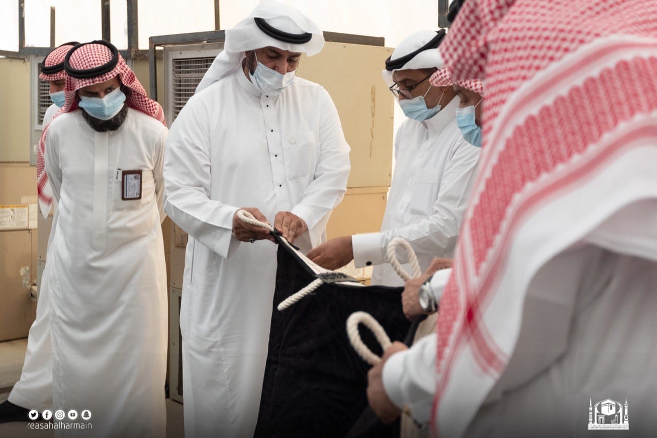 تفقد الثوب الجديد للكعبة المشرفة لهذا العام والتأكد من جودته