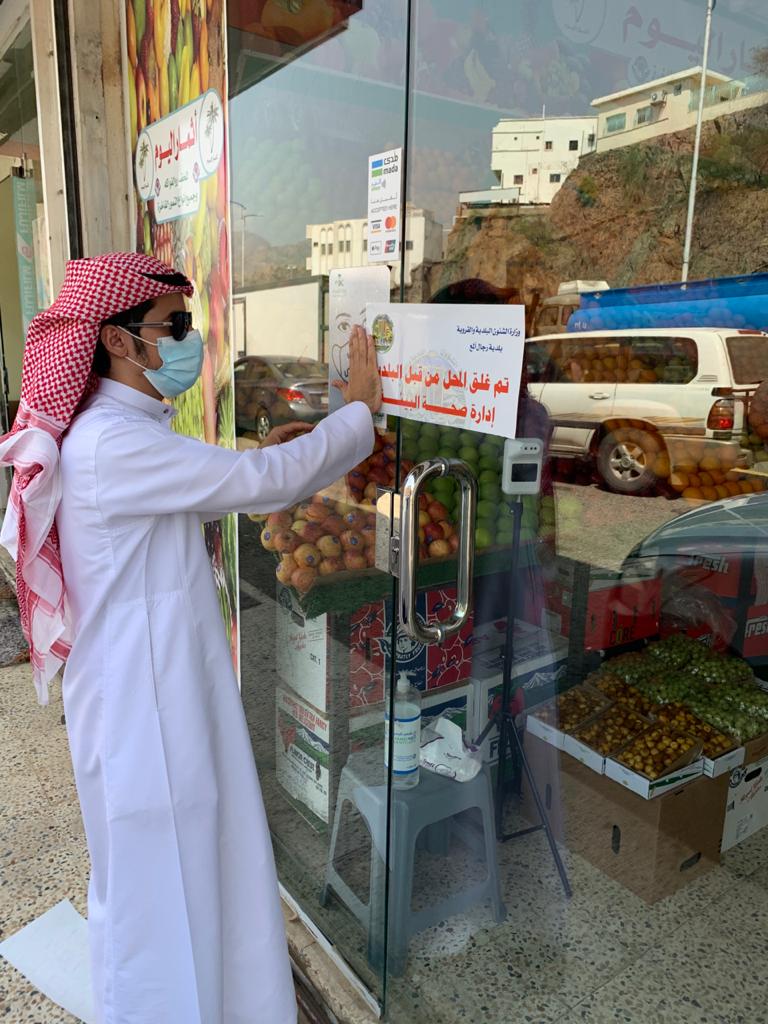 إغلاق 5 محلات مخالفة للإجراءات الاحترازية والاشتراطات الصحية في رجال ألمع