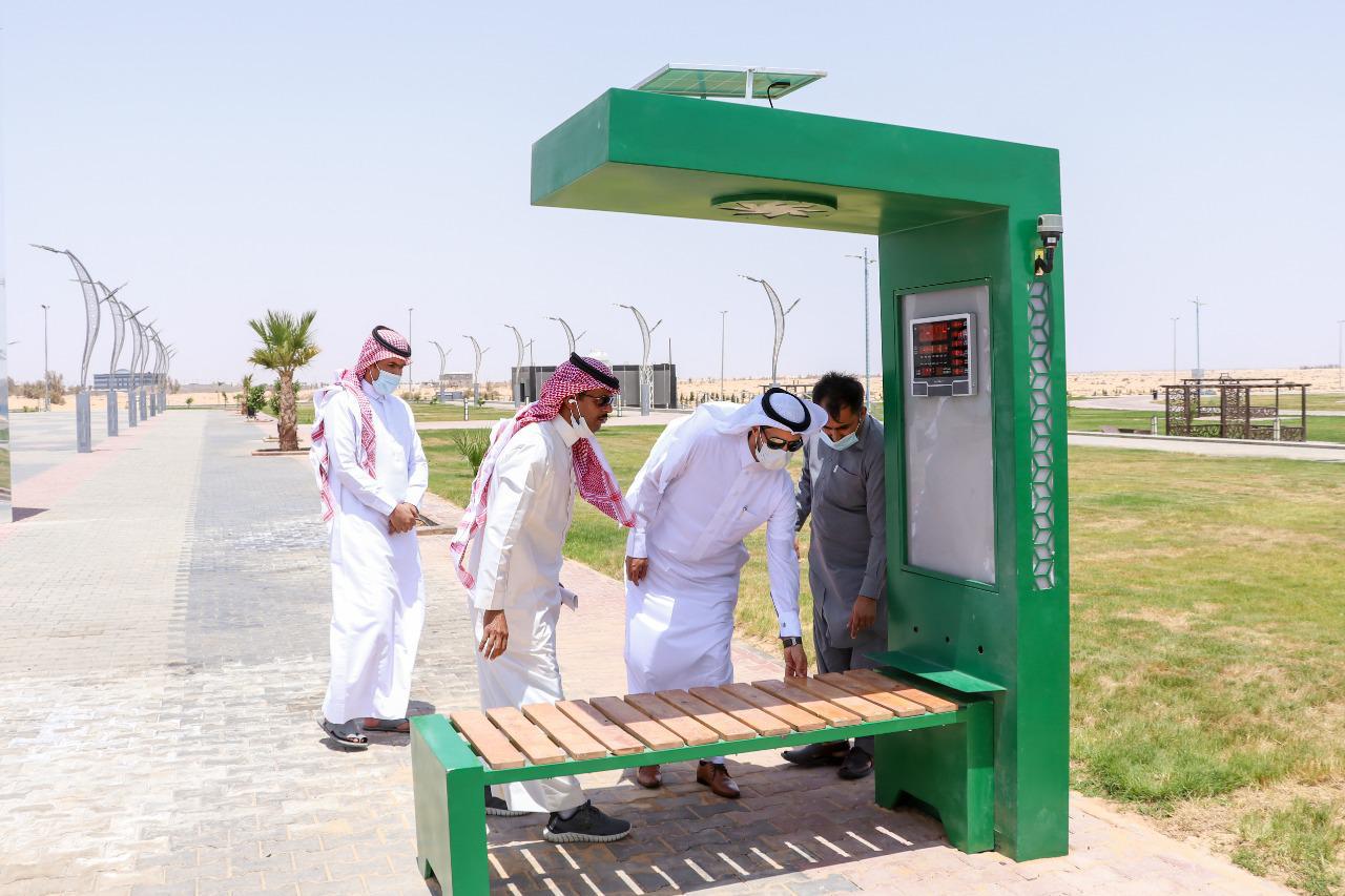 جاء ذلك بعد جولة تفقديه قام بها على الحديقة بعد تركيب عدد من الكراسي الذكية وألعاب الأطفال بأرضيه مطاطيه لسلامتهم و رافقه خلال الجولة مساعد رئيس البلدية الأستاذ صالح بن غضيان الميل ومدير إدارة التشغيل والصيانة الأستاذ عبدالمجيد الخصي