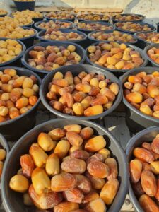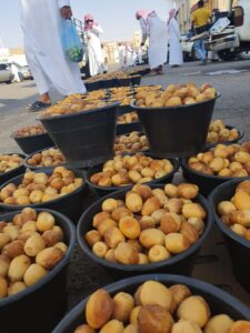 يشهد سوق التمور بمحافظة حوطة بني تميم بسوق القاع تدفق كميات من التمور حيث بدأ توافد رطب المنيفي والصقعي والهلالي وحبه كبيره ماشاءالله تبارك الله الأسعار تتفاوت من ١٥ الي ٢٥ لنبوت السلطان اما رطب الهلالي حبه كبيره يصل سعره حراج ٤٠ ريال والدرجة الثانيه ١٥ الي ٢٠ ريال والخلاص على أواخره الان ، واكدوا زوار السوق : متى يقام مهرجان للعسل والتمور بمحافظة حوطة بني تميم