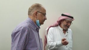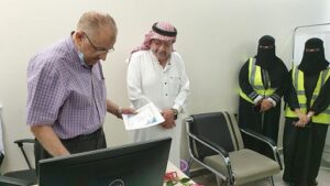 كما رحب الدكتور بسام الحمصي مدير المركز بالفريق التطوعي وشكرهم على زيارتهم للمركز للمرضى في وحدتي غسيل الكلى مثمنا مبادرتهم الإنسانية وموضحا أن العمل الإنساني والتطوعي عمل هادف ونافع ويعود على مقدمه بالسعادة والشعور بالارتياح النفسي ، مؤكدا ضرورة توعية أفراد المجتمع بضرورة الحفاظ على الكليتين واتباع الإرشادات الصحية والتوعية المكثفة بدعم مرضى الكلى معنويا وماديا كما حث رجال الأعمال وسيدات الأعمال لدعم المركز الذي يقدم خدماته لكثير من الفقراء والمحتاجين الذين لا يستطيعوا سداد تكاليف جلسات الغسيل وذلك من خلال المسؤولية المجتمعية التي تنادي بها رؤية المملكة 2030 ليتابعوا برنامجهم الطبي والعودة إلى الحياة الصحية بخير وعافية .وفي الختام قدم لهم شهادات الشكر والتقدير.