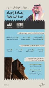 أعلن صاحب السمو الملكي الأمير محمد بن سلمان بن عبدالعزيز آل سعود، ولي العهد نائب رئيس مجلس الوزراء رئيس مجلس الشؤون الاقتصادية والتنمية، إطلاق مشروع “إعادة إحياء جدة التاريخية” ضمن برنامج تطوير جدة التاريخية الذي يهدف إلى تطوير المجال المعيشي في المنطقة لتكون مركزاً جاذباً للأعمال وللمشاريع الثقافية، ومقصداً رئيسًا لروّاد الأعمال الطموحين.