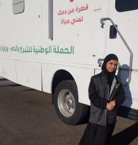 واليوم نراها تبدع من أجل الوطن وخدمة المجتمع في مبادرة تثقيفيه وتوعويه لأهمية التبرع بالدم ،  والهدف ليس التبرع بالدم فقط بل استمرار المتبرعين على التبرع كل ٨ أسابيع من أجل أن تبقى مملكتنا الحبيبة في قائمة الدول المتصدرة عالميا بالتبرع بالدم.