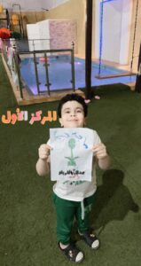 إن فرحة الأطفال تبقى فارقة وحاضرة لتكون أضعاف فرحة الكبار لخلو قلوبهم من هموم الحياة ومشاغلها , والتي تبرز عندما ترسم على مُحيّا الأطفال وهم يتوشحون أعلام الوطن التي تزينها كلمات التوحيد “لا إله إلا الله محمد رسول الله” والابتسامة تعلو محياهم ، في تعبير صادق عن الفرح الغامر الذي تزهو به نفوسهم الصافية النقية وتم ترجمة حبهم إلى لوحات ورسومات بصنع أيديهم بمواهب وطنية جميلة جدا.