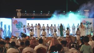 وأعلن مع نهايته اختتام حفل الأهالي ، لتبدأ معه مسيرة استمرار الإعمار من مختلف الأعمار لتخلد المملكة العربية السعودية بين الأمم راية خضراء بناءّ وعطاءً فهي لنا دار .