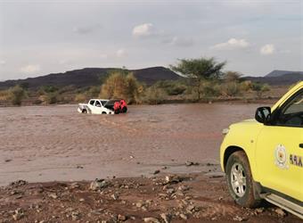 مدني المدينة”: إنقاذ 4 أشخاص احتجزوا داخل مركبة في سيل بقرية الفقير