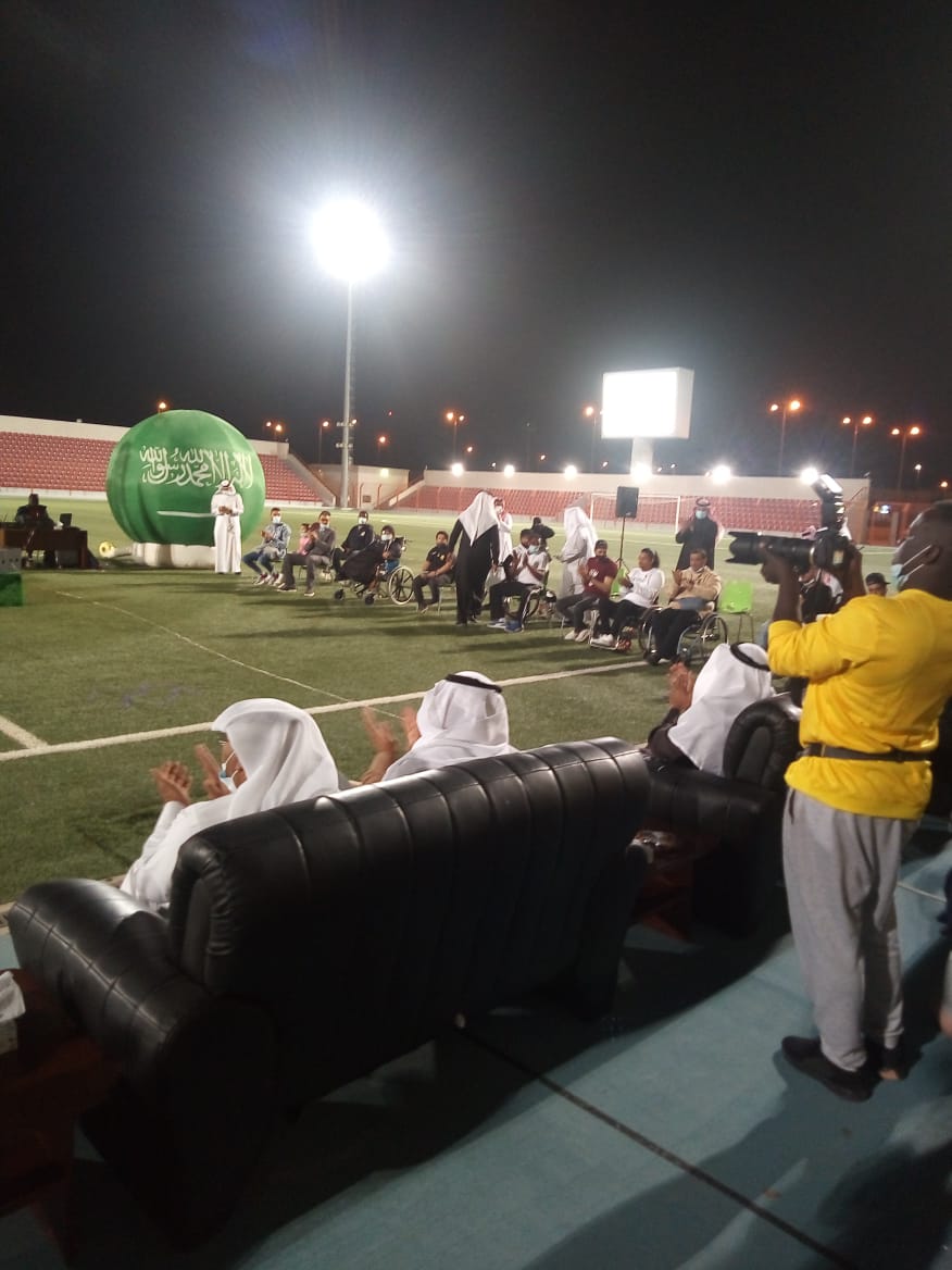 ألقى الدكتور فراس الحربي كلمة تحدث فيها عن مكانه أصحاب الهمم بين أفراد وحث على الوقوف بجانبهم ومساندتهم وتقديم سبل الدعم لهم وإتاحة الفرص لاكتشاف إبداعاتهم ومواهبهم.