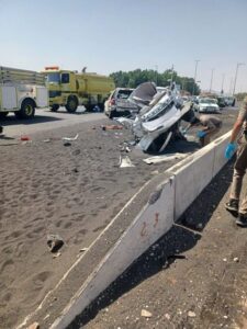 شاهد.. 4 وفيات و 5 إصابات في حادث تصادم شاحنة بعدد من المركبات بالمدينة المنورة