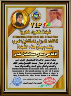 نهنئ الإعلامي وجدي عبدالجليل نجدي لحصوله على الدكتوراه الفخرية من الاتحاد الدولي للمثقفين العرب، ومنحه الشهادة من رئيس الاتحاد الدولي للمثقفين العرب سمو الشيخة نوال الحمود الصباح ، إثر دوره الرائد في مجال خدمة المجتمع ونشر العلم والثقافة والفكر وقيم الإسلام والمحبة والرحمة.