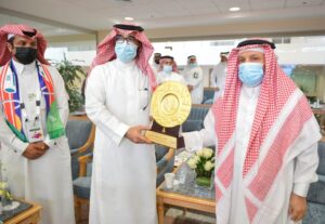 وفي ختام الحفل قدم معالي رئيس الجامعة درعًا تذكاريًا لرئيس الاتحاد الرياضي، كما قدم الاتحاد الرياضي درعًا تذكاريًا بهذه المناسبة لجامعة الملك عبد العزيز.