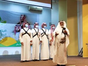 هذا وقد تفاعلت الأقسام التعليمية بالمعهد مع اليوم الوطني حيث نفذت أكثر من 17 فعالية حضورية وعن بعد ومنها : مسابقات وطنية ومعارض فنية وأناشيد وطنية وزيارة للمصمك وخيمة شعبية وعروض مرئية وحائط الكتروني وركن الرسومات والعديد من الفعاليات والتي استمرت أسبوعا كاملا بالإضافة إلى حملة إعلامية وتزيين مرافق المعهد بالإضاءة الخضراء وكذلك اللوحات التعريفية بالمناسبة .