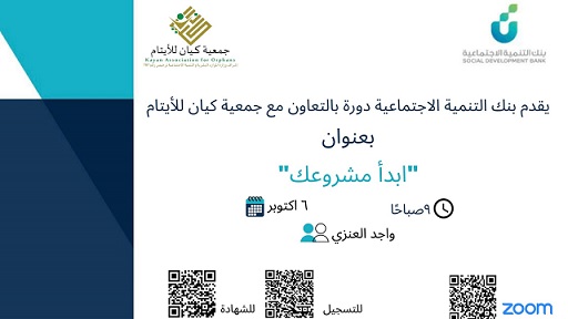 ضمن مشروع “ريادة الأعمال ” وهو أحد مشاريع جمعية كيان للأيتام ذوي الظروف الخاصة التي تهدف إلى تمكين مستفيديها في عدد من المجالات وتنمية قدراتهم ليصبحوا أفرادا فاعلين في المجتمع ، أقيمت اليوم دورة ” إبدأ مشروعك ” التي قدمها بنك التنمية الاجتماعية بالتعاون مع جمعية كيان وقامت بالتدريب الأستاذة واجد العنزي عبر منصة زوم وذلك بحضور “25” متدربة من مستفيدات كيان .