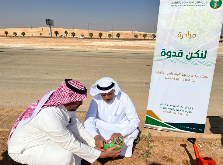 وانطلقت أعمال الحملة بزراعة مجموعة من الأشجار بحضور مدير عام فرع وزارة البيئة بمنطقة الحدود الشمالية المهندس بندر بن صالح الهديه ورئيس النادي الأدبي الثقافي بالمنطقة الأستاذ ماجد بن صلال المطلق .