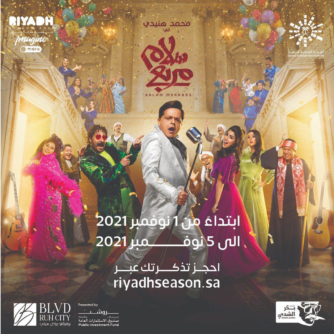 تُعرض في الأول من نوفمبر المقبل مسرحية “سلام مربع”، أولى المسرحيات في موسم الرياض 2021، على مسرح بكر الشدي في منطقة “بوليفارد رياض سيتي”، وهي مسرحية كوميدية من بطولة أسماء شهيرة في المسرح المصري، على رأسهم الفنان محمد هنيدي، وأيتن عامر، ومحمد ثروت.