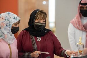 شرفت صاحبة السمو الأميرة / هيام بنت غالب فرحان والعضو الفخري العام لصحيفة أشجان الألكترونية و السكرتيرة الخاصة لها المؤلفة نجلاء حمود المحياوي ، بزيارة لمعرض العطور عبر العصور في مساء يوم السبت الموافق بتاريخ 30 -10-2021 م  و تلبية لدعوة تحت رعاية غرفة جدة وتحت تشريف بن الشلهوب للمزادات الخاصة بالعود ودهن العود الزيارة من سموها .