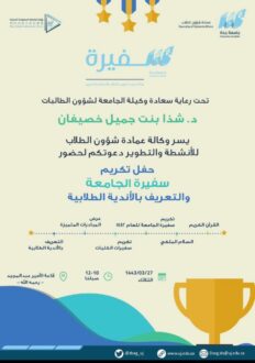 وقد حصلت الطالبة نوف أحمد العصلاني على لقب سفيرة الجامعة من كلية الاتصال والإعلام لمبادرتها(السلطة الرابعة)،