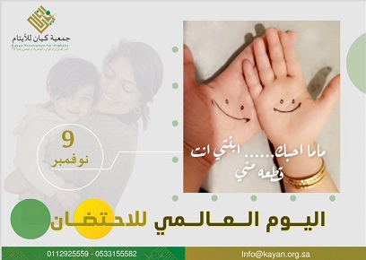 تشارك السعودية دول العالم في الاحتفاء باليوم العالمي للاحتضان الذي يصادف التاسع من نوفمبر من كل عام ، واليوم العالمي للاحتضان يعد يومًا مخصصا لنشر فكرة الاحتضان في جميع دول العالم، وذلك برسم وجه مبتسم على راحة اليد وتصويرها، والاحتضان في العالم الإسلامي ليس بغريب من حديث الرسول صلى الله وعليه وآله وسلم: “أنا وكافل اليتيم في الجنة كهاتين”.