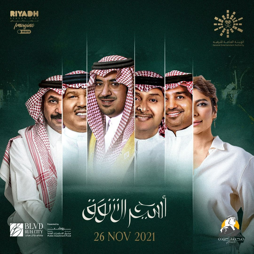تتوجه جميع الأنظار تاريخ يوم 26 نوفمبر 2021 الى مسرح “محمد عبده ارينا” في المملكة العربية السعودية، لحضور والاستمتاع بالليلة الكبيرة التي ستقدمها الهيئة العامة للترفيه بالتعاون مع روتانا للصوتيات والمرئيات والشركة العالمية، بعنوان “ليلة اسير الشوق” والتي تعد واحدة من ليالي “موسم الرياض” الكبيرة والبارزة التي دعا إليها ويشرف على كل تفاصيلها معالي المستشار تركي ال الشيخ رئيس الهيئة العامة للترفيه، وسيحضرها جمهور غفير يملئ المكان.