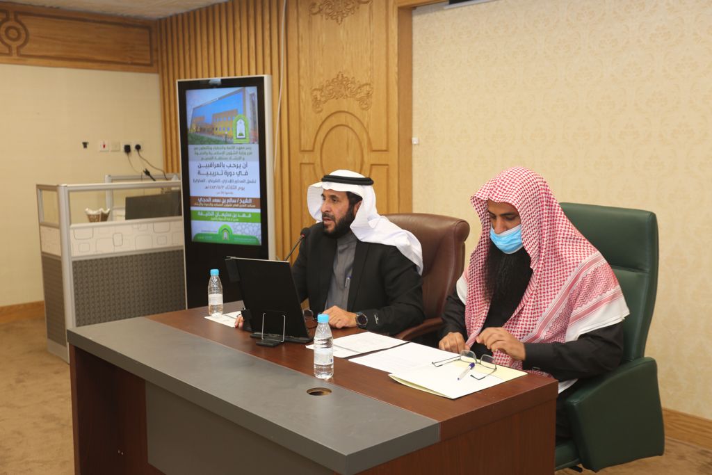 نظم معهد الأئمة والخطباء بالتعاون مع فرع وزارة الشؤون الإسلامية بمنطقة القصيم، اليوم دورة تدريبية، بمشاركة 250 مراقب حضورياً وعبر البث المباشر للمحافظات والمراكز البعيدة ضمن برنامج تأهيل المراقبين وحيث اشتملت على عدد من المحاور منها الجانب الإداري والشرعي والفكري.