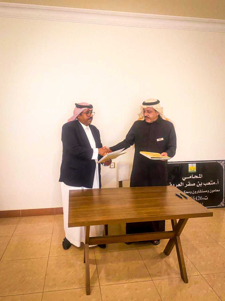 حضر لقاء التوقيع بمكتب العريفي كلا من المحامين :- الأستاذ إبراهيم العريفي و محمد المالكي ونهار بن عريعر والمحاميات العنود القذلان و هديل العنزي وأمل القحطاني ورحاب الحسيني.