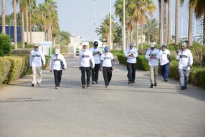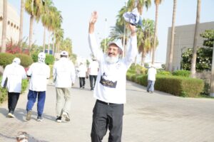 كما اكد قائد الفريق العميد سعيد القحطاني على أهمية نشر ثقافة المشي بين المجتمع والدور المباشر في المحافظة على الصحة وتأخير الشيخوخة والمشي يعين على مقاومة الامراض المعاصرة ويمكن مزاولته في أي وقت واي مكان.