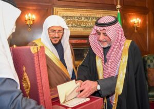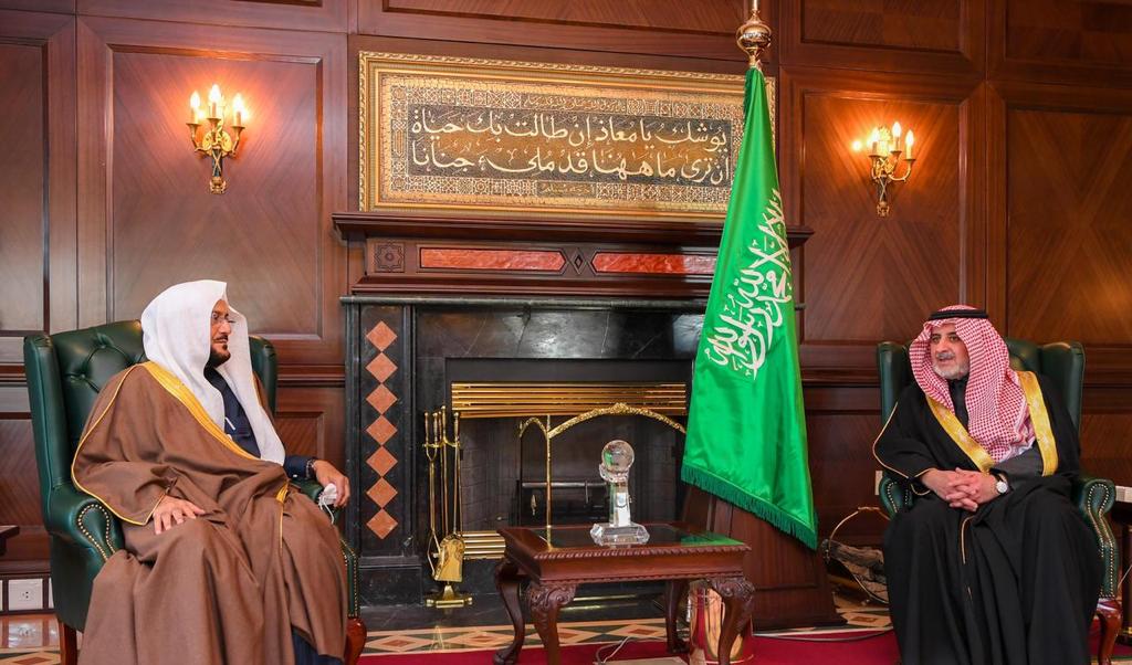 وفي ختام اللقاء تسلم سموه هدية تذكارية من معالي وزير الشؤون الإسلامية