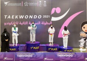 اختتمت أمس السبت منافسات البطولة النسائية الثانية للتايكوندو في فرعي البومسي والكيروقي بمشاركة (301) لاعبة يمثلون (19) فريقاً من مختلف مناطق المملكة ومشاركة (5) أندية رسمية ولأول مرة وهم (وج والاتفاق والرياض والجبيل والوطني) ومراكز (خطوات الأبطال وقلب الأبطال وأكاديمية أبها ووقت القتال ونادي JC وجامعة الأميرة نورة وفريق كومبات وأكاديمية رد زون ورواد العرب ومركز فات تو فيت وأكاديمية شيراز وأكاديمية سمارت وأكاديمية ساحة النجوم وجامعة تبوك) ، واحتضنت صالة الأمير فيصل بن فهد بالرياض المنافسات التي أدارها