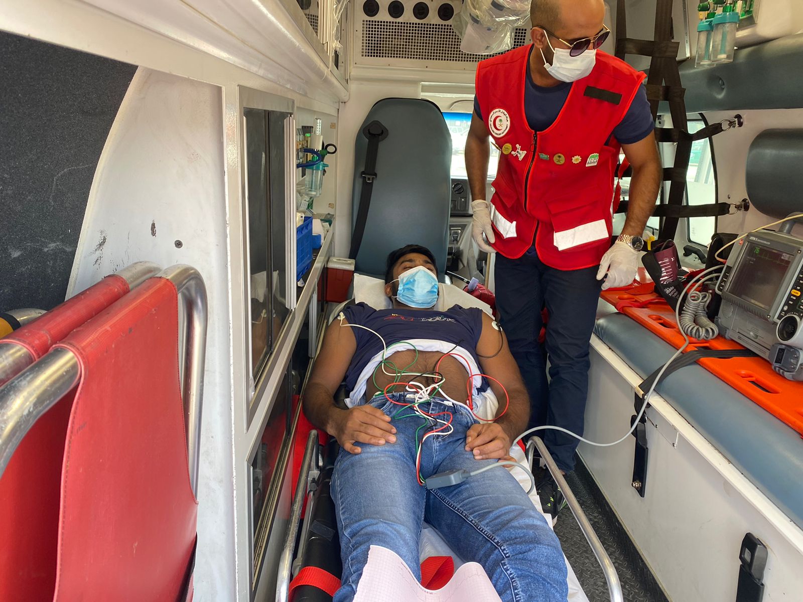 الهلال الأحمر بجازان ينفذ فرضية إسعافية لمريض مصاب بجلطة في القلب