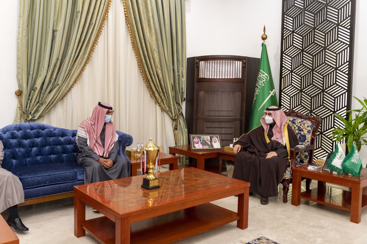 جاء ذلك خلال استقبال سموه في مكتبه اليوم، لرئيس مجلس إدارة نادي الجوف لذوي الإعاقة فهيد بن عشوي الشمري، والرئيس التنفيذي للنادي صالح بن مصلح المريح، ومدرب الفريق مهند جبار، و13 لاعباً بمناسبة حصول فريق كرة الهدف لذوي الإعاقة البصرية، وفريق كرة السلة على الكراسي المتحركة على كأس دوري الدرجة الأولى، والتأهل إلى الدوري الممتاز.