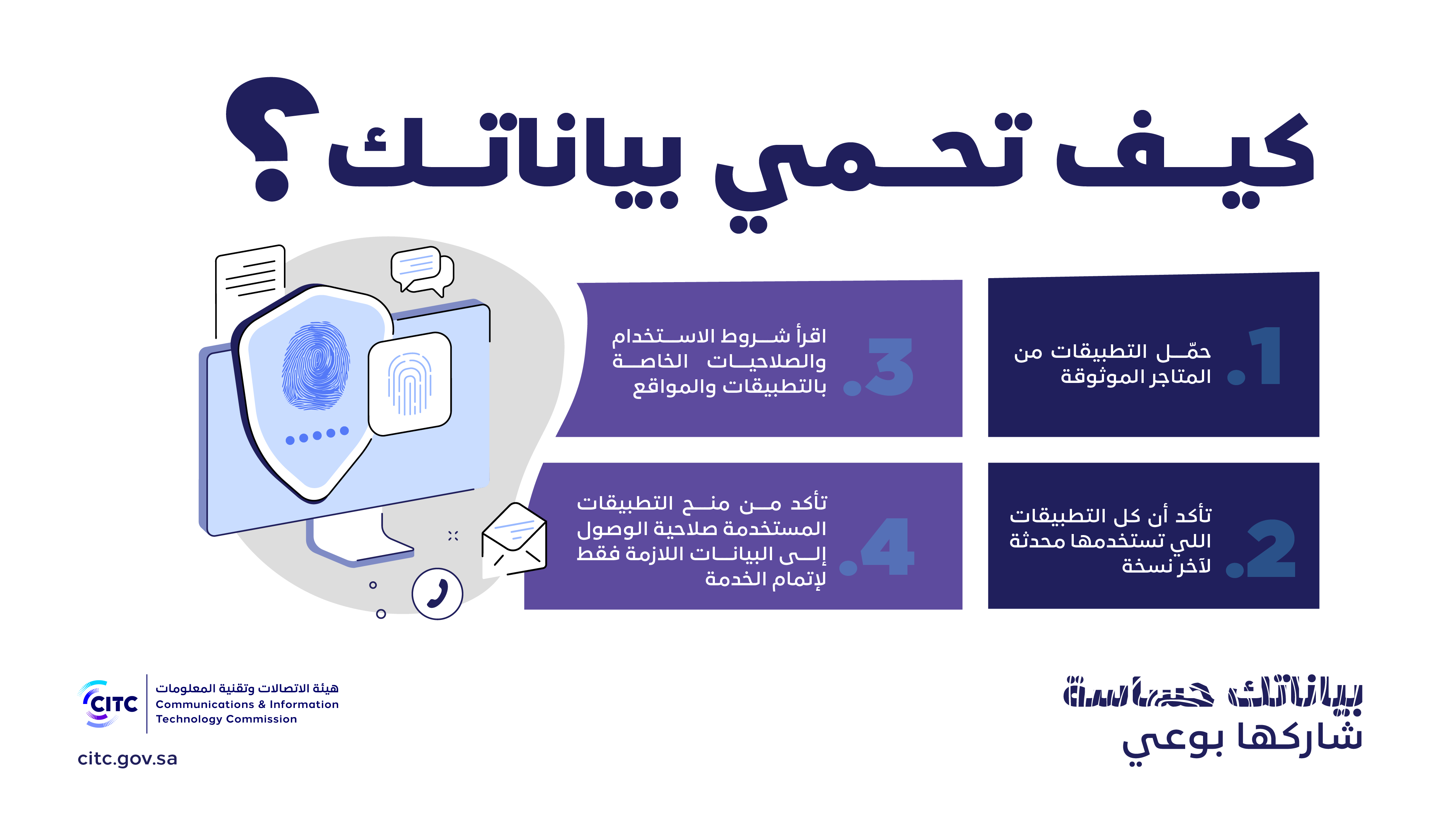 حذرت هيئة الاتصالات وتقنية المعلومات الجميع، من تسريب البيانات الشخصية عبر بعض التطبيقات الإلكترونية التي تطلب السماح بمشاركة المعلومات الخاصة دون داعٍ.