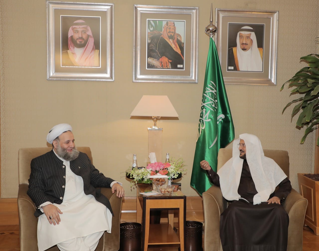 التقى معالي وزير الشؤون الإسلامية والدعوة والإرشاد الشيخ الدكتور عبداللطيف بن عبدالعزيز آل الشيخ، اليوم بمقر إقامته بالعاصمة المصرية القاهرة، الوزير الاتحادي للشؤون الدينية والتحالف بين الأديان بجمهورية باكستان الإسلامية الدكتور نور الحق قادري، وذلك على هامش زيارته الرسمية لجمهورية مصر العربية لرئاسة أعمال الدورة الـ13 للمجلس التنفيذي لمؤتمر وزراء الأوقاف والشؤون الإسلامية بدول العالم الإسلامي.