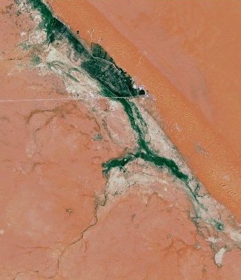 صورة جوية من الأقمار الصناعية لروضة خريم ويظهر اخضرارها الزاهي