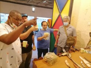 شهدت قرية جازان التراثية مساء السبت إقبالًا كبيرًا من الزوار الذين توافدوا على القرية ، التي تتخذ من شاطئ بحر جازان الجنوبي موقعًا لها، واستقبل مدير القرية حمد الدقدقي زوارًا من إسبانيا جاءوا للتعرف على بعض العادات والتقاليد التي تتميز بها المنطقة، واستمعوا إلى شرح عن بعض الأزياء التراثية التهامية على وجه التحديد وأبدوا سعادة كبيرة وهم يرتدون بعض الأزياء الشهيرة في المنطقة، فيما شهدت الأركان التي جمعت الروائح العطرية ذات الطابع الجبلي والخلطات والنهكات الأخرى إقبالًا من الزوار الذي ساعدهم الجو المعتدل على قضاء أجواء رائعة جمعت جمال البحر نسائمه وألوان التراث والعادات التي اجتمعت على أرض القرية التراثية.