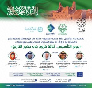 في يوم التأسيس.. “إعلاميون’ تدشن فرعها في منطقة عسير بندوة” يوم التأسيس.. ثلاثة قرون في جذور التاريخ”