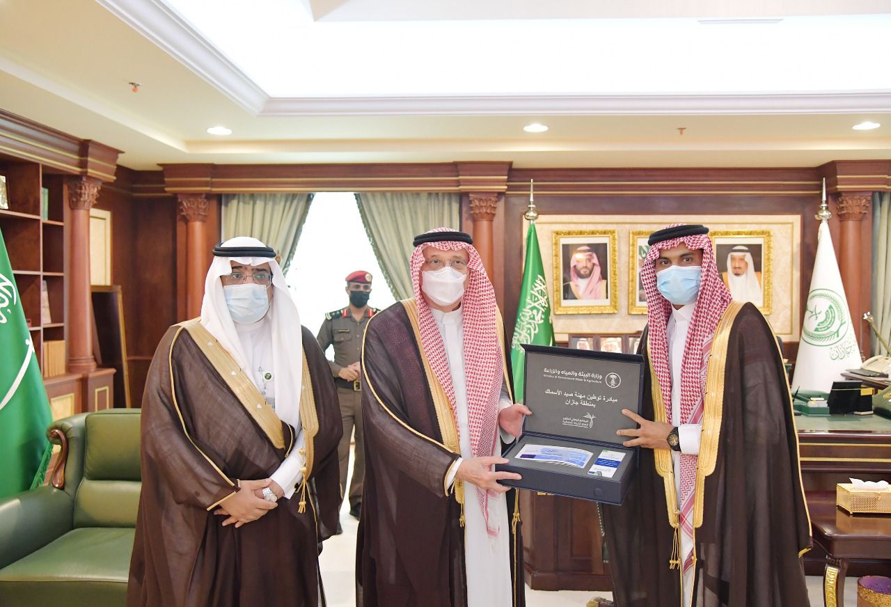 وتسلم سموه التقرير السنوي لإنجازات فرع وزارة البيئة والمياه والزراعة بالمنطقة للعام المنصرم 2021م ، مستمعا لشرح مفصل من مدير عام فرع وزارة البيئة والمياه والزراعة بجازان المهندس محمد بن علي آل عطيف ، وتسلم كتيب مبادرة توطين مهنة الصيد التي ينفذها الفرع وما تضمنه التقرير السنوي للفرع من الإنجازات والخدمات والأعمال التي قدمها فرع وزارة البيئة والمياه والزراعة في جميع المجالات التي تقع في اطار عمل الفرع.