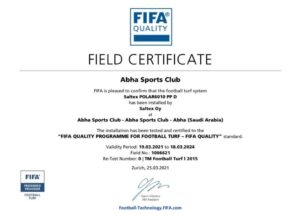 هذا وقد حصل ملعبها الرئيس على شهادة FIFA نظير مطابقته للمعايير الدولية واشتراطات الجودة، وتضم المنشأة ملعباً رئيسياً يتسع لـ5 آلاف متفرج، وملعب رديف لأداء التدريبات، بالإضافة إلى ملعبين مكشوفين للألعاب المختلفة، ومبنى رئيسي يحتوي على مكاتب إدارية، وصالات للأعضاء والخدمات والألعاب المختلفة، ومكتبة، ومسبح نموذجي ومتكامل، إضافة إلى توافر جامع في مدخل النادي يتسع لحوالي 200 مصلٍّ .