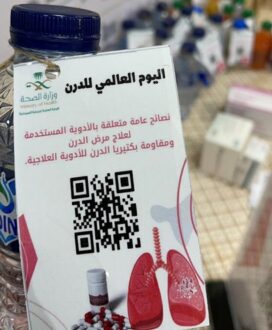 وبهذه المناسبة تم تفعيل اليوم العالمي للدرن في مركز الروضه١ ومركز قرطبة التابع للتجمع الصحي الثاني بالرياض من قبل الصيدلانيات، “فخرية العتيبي ، وأميرة المهيلب ونوف الشاعر، وفوزه العنزي، ونهال الحربي”، حيث أقاموا معرضا بهذه المناسبة ضم العديد من اللوحات الإرشادية والأدوية والبروشورات وقامت الصيدلانيات المذكورة أسمائهن بالتوعية بأخطار مرض الدرن والشرح الكامل للمراجعين عن أهمية التطعيم ضد الدرن وكيفية الوقاية منه وطريقة العلاج الصحيحة. وقالت الصيدلانيات من أهم أهداف اليوم العالمي للدرن هو التعرف على هذا المرض الذي يُعتبر أحد الأمراض الصدرية المعدية؛ والتي تُهاجم فيها العدوى الرئتين مع معرفة انتشاره وكذلك التدابير الوقائية لتجنب الإصابة بالمرض وكيفية علاجه، وذلك في إطار أهداف التغطية الصحية الشاملة.