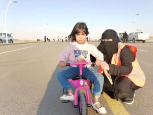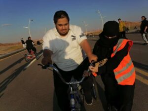 وانطلاقا من رؤية 2030 والتي أطلقتها حكومتنا الرشيدة والتي جعلت ضمن اهتمامها هذه الفئة وما يمكنهم من الاندماج في مجتمعهم ليصبحوا فئة قادرة على العطاء وخدمة أنفسهم ووطنهم، فقد أطلقت مؤسسة عسيب للأعمال الإنسانية مبادرة” أبطال الدراجة” ، والتي تعد الأولى من نوعها بالمنطقة ،وهي عبارة عن تمرين لذوي الإعاقة على الدراجات يقوم بتدريبهم كابتن متطوع وفريق تطوعي من الجنسين ، وأطلق عليها (أبطال الدراجة) والتي تقام عصر كل يوم سبت في مركز التدريب بمركز الملك سلمان الحضاري ويقام لهم سباق نهاية كل شهر.